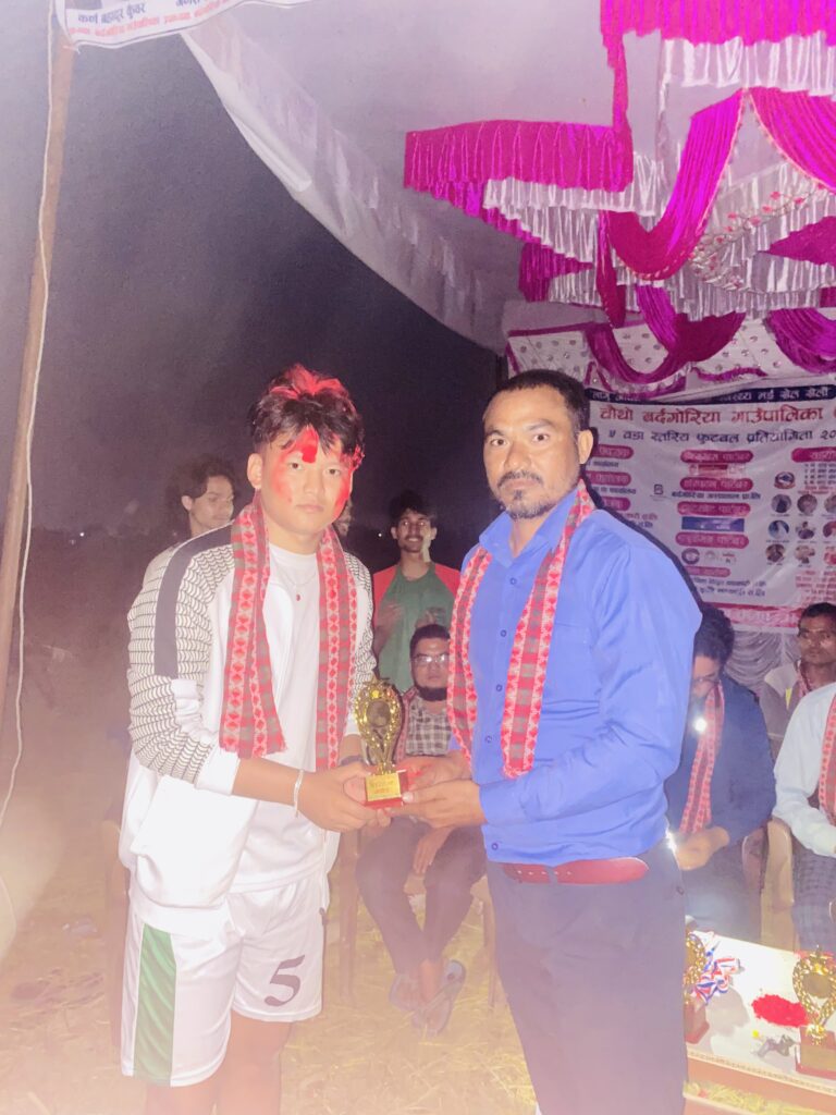 समापन समारोहका प्रमुख अतिथि बर्दगोरिया गा. पा वडा नम्बर ५ का वडा अध्यक्ष भोलेराम ले खेलकुदले युवालाई अनुशासित, जिम्मेवार र स्वाभिमानी बनाउने बताए । हाम्रो वडा मा खेलमैदान नभए पनि हाम्रो यस वडा मा वडा स्तरीय फूटबल प्रतियोगिता र बिद्यालय स्तरीय वडा अध्यक्ष कप संचालन हुदै आएको छ। हामीले हाम्रो वडामा खेलमैदान का लागि निकै प्रयास गर्दै छौ। सायद अर्को आउने वडा स्तरीय फूटबल प्रतियोगिता खेलमैदानमा खेल्न पाउनु हुनेछ भन्ने आशा राखेका छौ। कार्यक्रममा प्रतियोगिता सफल बनाउन सहयोग गर्ने व्यक्तिहरू तथा संस्थाहरूलाई सम्मानपत्र र कदरपत्र प्रदान गरिएको थियो ।