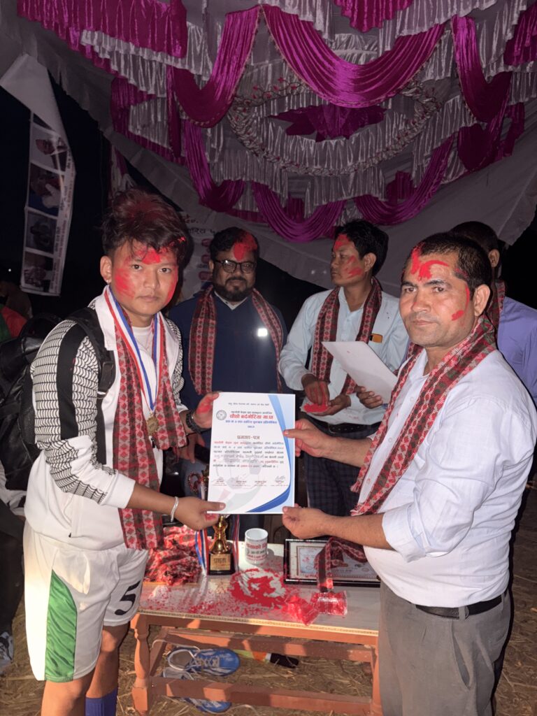 व्यक्तिगत विधातर्फ उत्कृष्ट गोलरक्षक महेश रावल उत्कृष्ट डिफेन्डर मनोज लामिछाने सर्वाधिक गोलकर्ता विवेक सुनार र उत्कृष्ट खेलाडी सनिश थापालाई ट्रफी सहित सम्मान गरिएको थियो ।