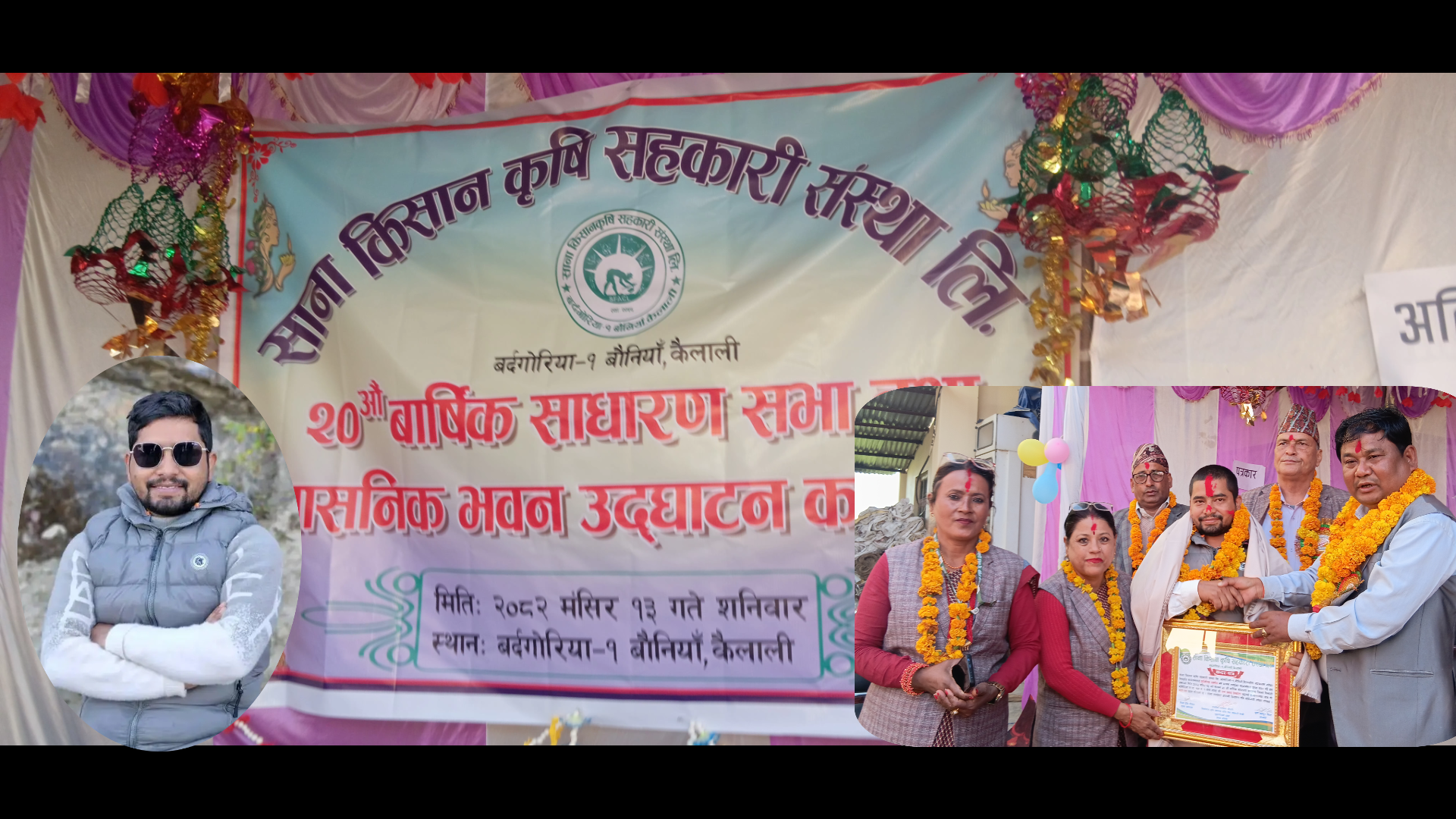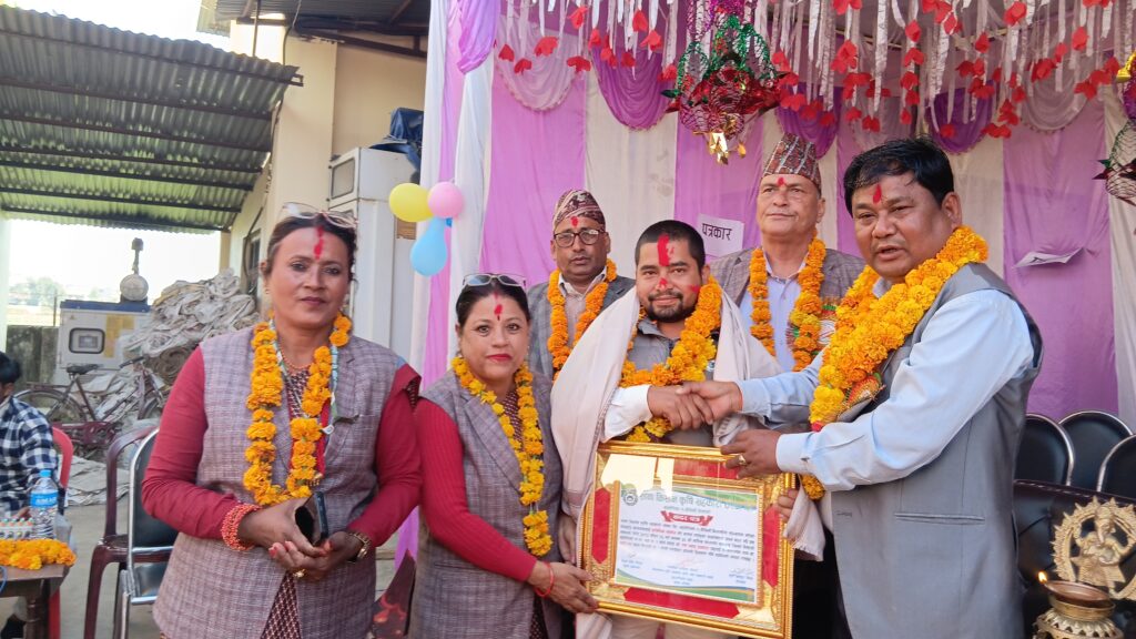 २० औँ वार्षिक साधारण सभा तथा प्रशासकिय भवन उद्धाटन कार्यक्रमको अवसरमा आयोजित कार्यक्रममा संस्थाका अध्यक्ष पूर्ण बहादुर बिष्ट र प्रमुख अतिथि सुदूरपस्चिम प्रदेश सभा सदस्य तथा पूर्व मन्त्रि रामेश्वर चौधरी द्धारा कदर पत्र र दोसल्ला ले सम्मानित भएका हुन्।