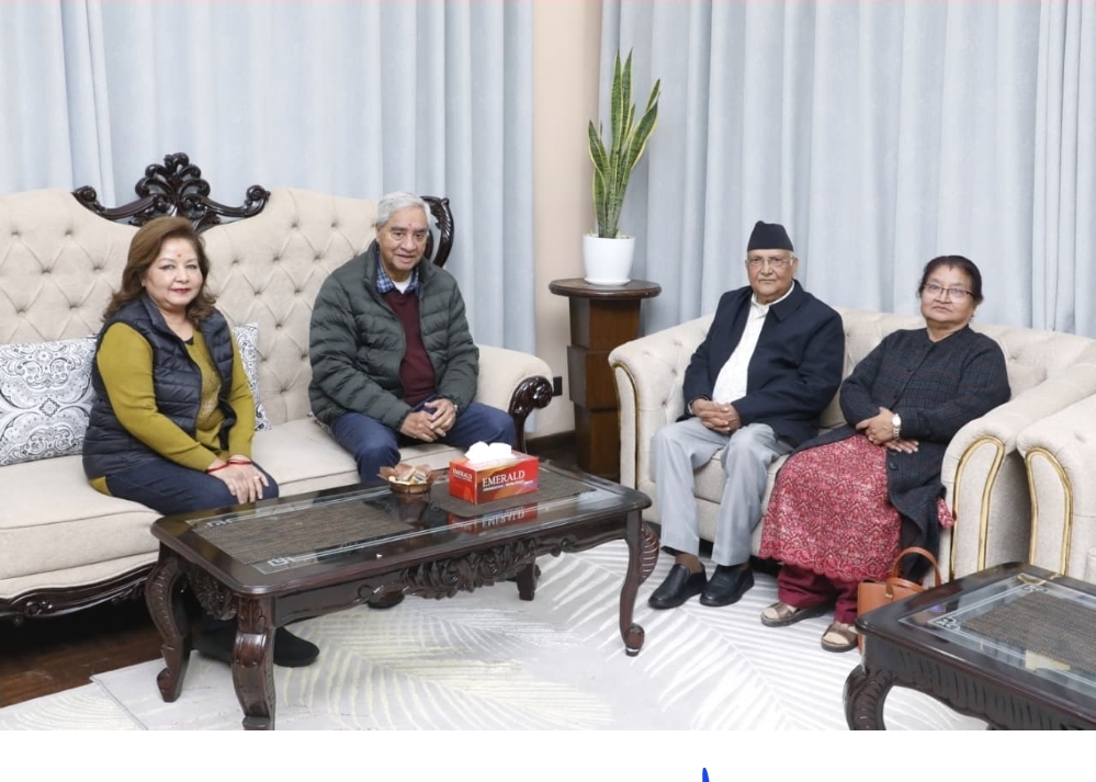ओलीले श्रीमती राधिका शाक्यलाई लिएर देउवा दम्पतीलाई भेट्न उनको निवासमा गएका हुन् ।