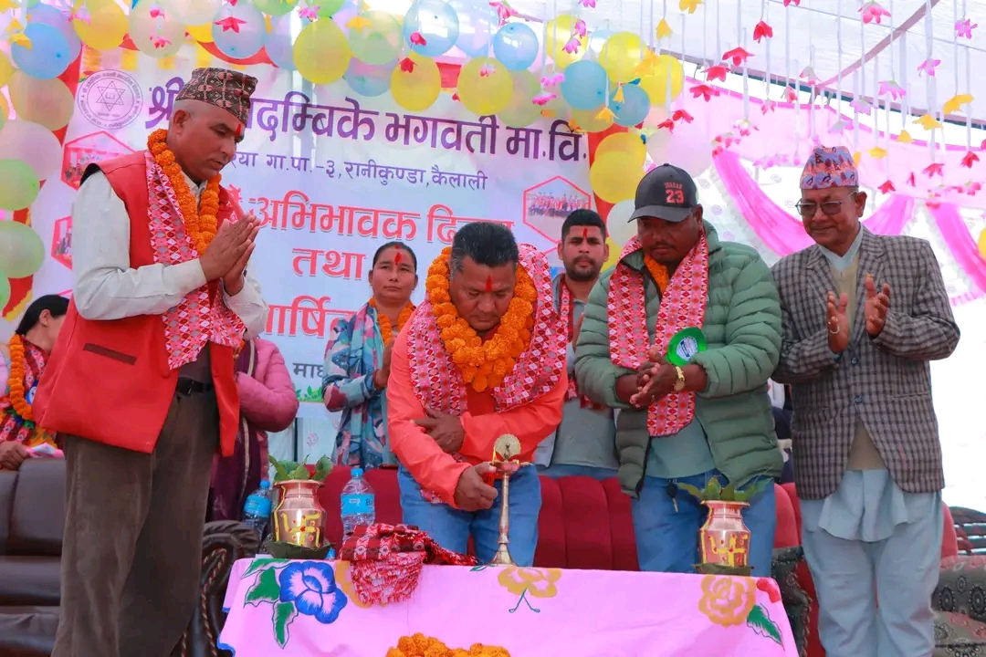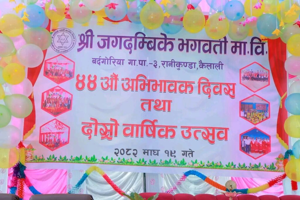 कैलाली, बर्दगोरिया गाउँपालिका–३ रानिकुण्डामा रहेको जगदम्बिके भगवती माध्यमिक विद्यालयले सोमबार ४४ औँ अभिभावक दिवस तथा दोस्रो वार्षिक उत्सव विविध कार्यक्रमका साथ भव्य रूपमा सम्पन्न गरेको छ।