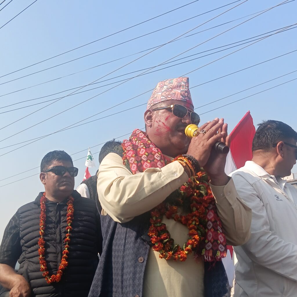 यस्तै सभालाई सम्बोधन गर्दे उम्मेदवार बिजय बहादुर स्वाँरले गत भदौं २३ र २४ को जनभावनालाई अंगिकार गरि अघिबढेको एकमात्र पार्टी नेपाली काँग्रेस रहेको दाबी गरे । “बदल्यौ काँग्रेस बदल्छौं देश” भन्ने मुल नाराका साथ नेपाली काँग्रेस देशभरी उर्बर रुपमा अगाडी बढेको उनले उदघोष गरे । स्वाँरले आफूलाई ‘नेता’ भन्दा पनि जनताको ‘सेवक’ को रूपमा प्रस्तुत गर्दै, उनले भने “हामी नेता होईनौ यस क्षेत्रको समग्र बिकासका लागि सम्पुर्ण नागरिकको कामगर्ने सेवक हो ।” आफु यहि क्षेत्रमा जन्मेको यहि क्षेत्रको माटोले बनेको शरिर अब यसै क्षेत्रको माटो समुदाय र जनताको सेवामा खटिने प्रतिबद्धता समेत ब्यक्त गरे । आफुलाई थारु, दलित महिला पिछडिएका बर्ग तथा आमरुपमा सबै क्षेत्रबासीको आर्शिवाद रहेको आज उपस्थित जनसागरले पुष्टि गरेकोे र आफु बिजयी हुनेमा निश्चिन्त रहेको उनले दाबी गरे ।