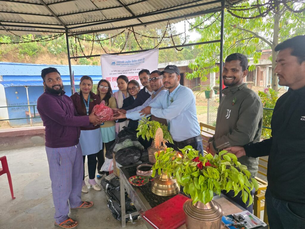 कैलालीको बर्दगोरिया गाउँपालिका–२ मा रहेको असहायका लागि सहयोगी हात नेपालद्वारा सञ्चालित सहारा घरलाई पोखरामा केन्द्रीय कार्यालय रहेको एनएमबि लघुवित्त वित्तीय संस्था लि. को १३ औं बर्ष पुरा गरि १४ औं बर्षमा प्रवेश गरेको उपलक्ष्यमा खाद्य सामाग्री हस्तान्तरण गरेको छ। आईतबार एनएमबि लघुवित्तले ५ बोरा चामल, १४ किलो दाल, १ पेटी खाने तेल, ५ किलो नुन, ५ किलो चिनि १ किलो चियापत्ती, १ पेटी स्याउ, ४ किलो अंगुर, १० किलो आलु, ५ किलो प्याज, ५ किलो टमाटर, ५ किलो गोभी, ५ किलो लौका र २ किलो बैगन हस्तान्तरण गरेको हो ।