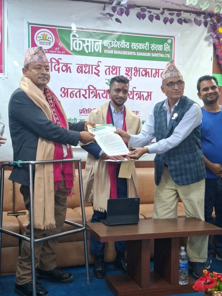 किसान बहुउद्देश्यीय सहकारी संस्था लिमिटेडले सुदूरपश्चिम प्रदेशअन्तर्गत कैलाली निर्वाचन क्षेत्र नं. २ बाट प्रतिनिधिसभा सदस्यमा निर्वाचित सांसदद्वयलाई बधाई तथा शुभकामना प्रदान गरेको छ।